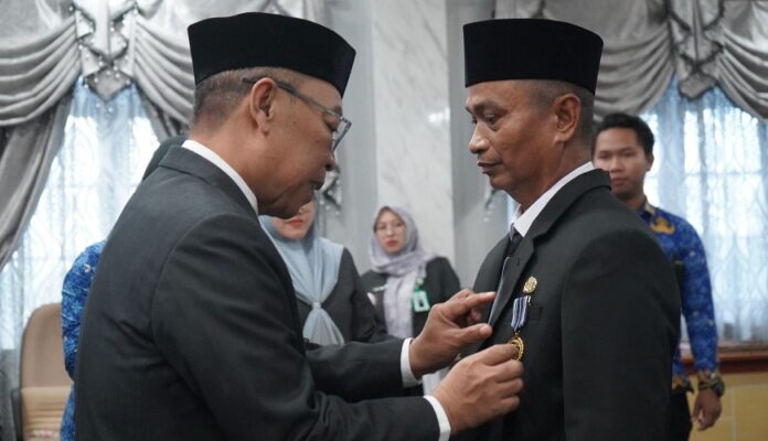 klikkalimantan.com, PARINGIN – Pemerintah Kabupaten (Pemkab) Balangan memberikan penghargaan berupa Tanda Kehormatan Satya Lancana Karya Satya (SLKS) kepada 86 Aparatur Sipil Negara (ASN) dengan masa pengabdian 30, 20, dan 10 tahun. Seremoni penganugerahan SLKS dilakukan Penjabat Sekretaris Daerah (Pj Sekda) Kabupaten Balangan, Sufrianor, Senin (8/12/2025) di Aula Benteng Tundakan, Kantor Bupati Banjar di Paringin.