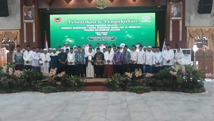 klikkalimantan.com, BANJARMASIN – Dewan Pimpinan Wilayah Harakah Badan Koordinasi Muballig se-Indonesia (Bakomubin) Provinsi Kalimantan Selatan masa khidmat 2025–2030 resmi dilantik dan dikukuhkan. Pelantikan dilaksanakan di Gedung Mahligai Pancasila, Sabtu (11/4/2026).