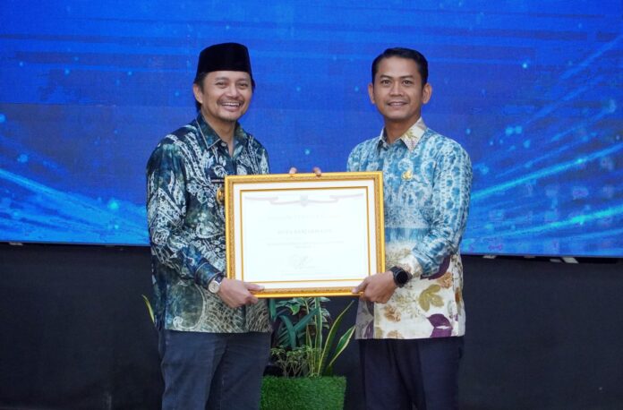 Penghargaan kategori Penyelenggara Pelayanan Publik dengan predikat Pelayanan Prima pada Pemantauan dan Evaluasi Penyelenggaran Pelayanan Publik (PEKPPP) Tahun 2024, diserahkan Wakil Menteri Pendayagunaan Aparatur Negara dan Reformasi Birokrasi (PANRB) Komjen Pol (P) Drs Purwadi Arianto MSi, kepada Walikota Banjarmasin HM Yamin HR.