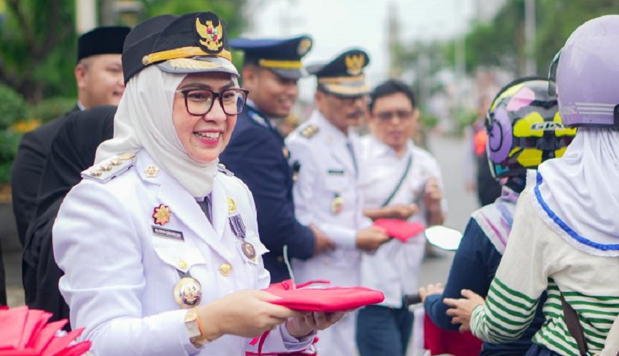 Membagikan bender adi peringatan HUT Kemerdekaan, menurut Wali Kota Lisa Halaby, simbol ajakan kepada masyarakat untuk semakin menumbuhkan rasa cinta tanah air serta memperkuat semangat nasionalisme.