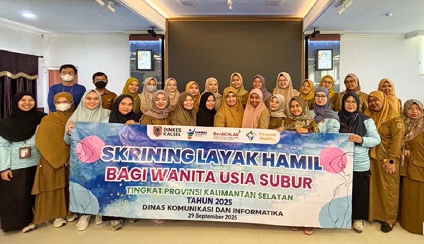 klikkalimantan.com, BANJARBARU – Dinas Komunikasi dan Informatika (Diskominfo) bersama Dinas Kesehatan (Dinkes) Provinsi Kalimantan Selatan (Kalsel) berkolaborasi menggelar kegiatan skrinning layak hamil bagi wanita usia subur di lingkungan kedua instansi, Senin (29/9/2025) di Aula Diskominfo Kalsel, Banjarbaru. skrining diikuti karyawati kedua instansi dengan rentang usia 20–35 tahun, baik yang sudah menikah maupun belum menikah.