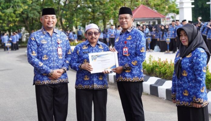 klikkalimantan.com, MARTAPURA – Pemerintah Kabupaten (Pemkab) Banjar, melalui Dinas Komunikasi Informatika Satistik dan Persandian (DKISP) menyerahkan Penghargaan Brigade Informasi Daerah melalui Portal Berita Infopublik 2025 kepada sejumlah Satuan Organisasi Perangkat Derah (SOPD). Penyerahaan penghargaan dilakukan Wakil Bupati Banjar, Said Idrus Al Habsyi usai pelaksanaan apel peringatan Hari Kesadaran Nasional, Rabu (18/2/2026) di halaman Kantor Bupati Banjar di Martapura.