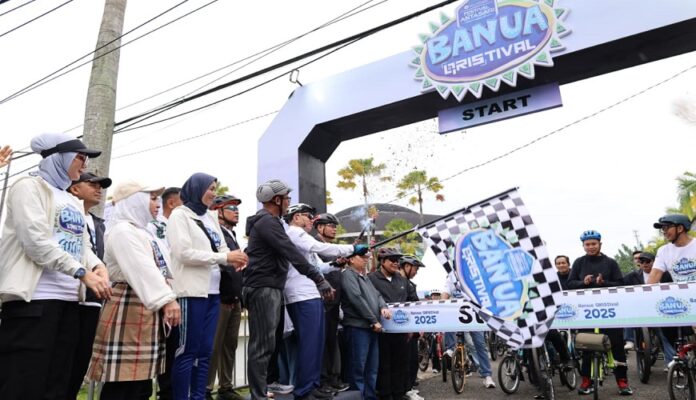 klikkalimantan.com, BANJARMASIN – Gubernur Kalimantan Selatan (Kalsel), H Muhidin bersama Sekretaris Daerah (Sekda), Muhammad Syarifuddin dan unsur Forum Komunikasi Pimpinan Daerah (Forkopimda) mengikuti gowes bersama ratusan peserta ‘Funbike Banua Qristival’, Sabtu (4/10/2025). Terpusat di halaman Gedung Sultan Suriansyah, kegiatan diselenggarakan Bank Indonesia Wilayah Kalsel.