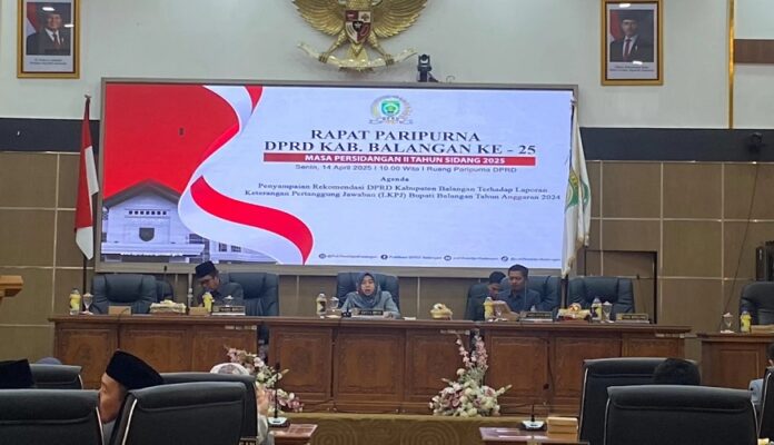 klikkalimantan.com, PARINGIN – DPRD Kabupaten Balangan menyampaikan sejumlah rekomendasi terhadap Laporan Keterangan Pertanggungjawaban (LKPj) Bupati Tahun Anggaran 2024, pada rapat paripurna, Senin (14/4/2025)