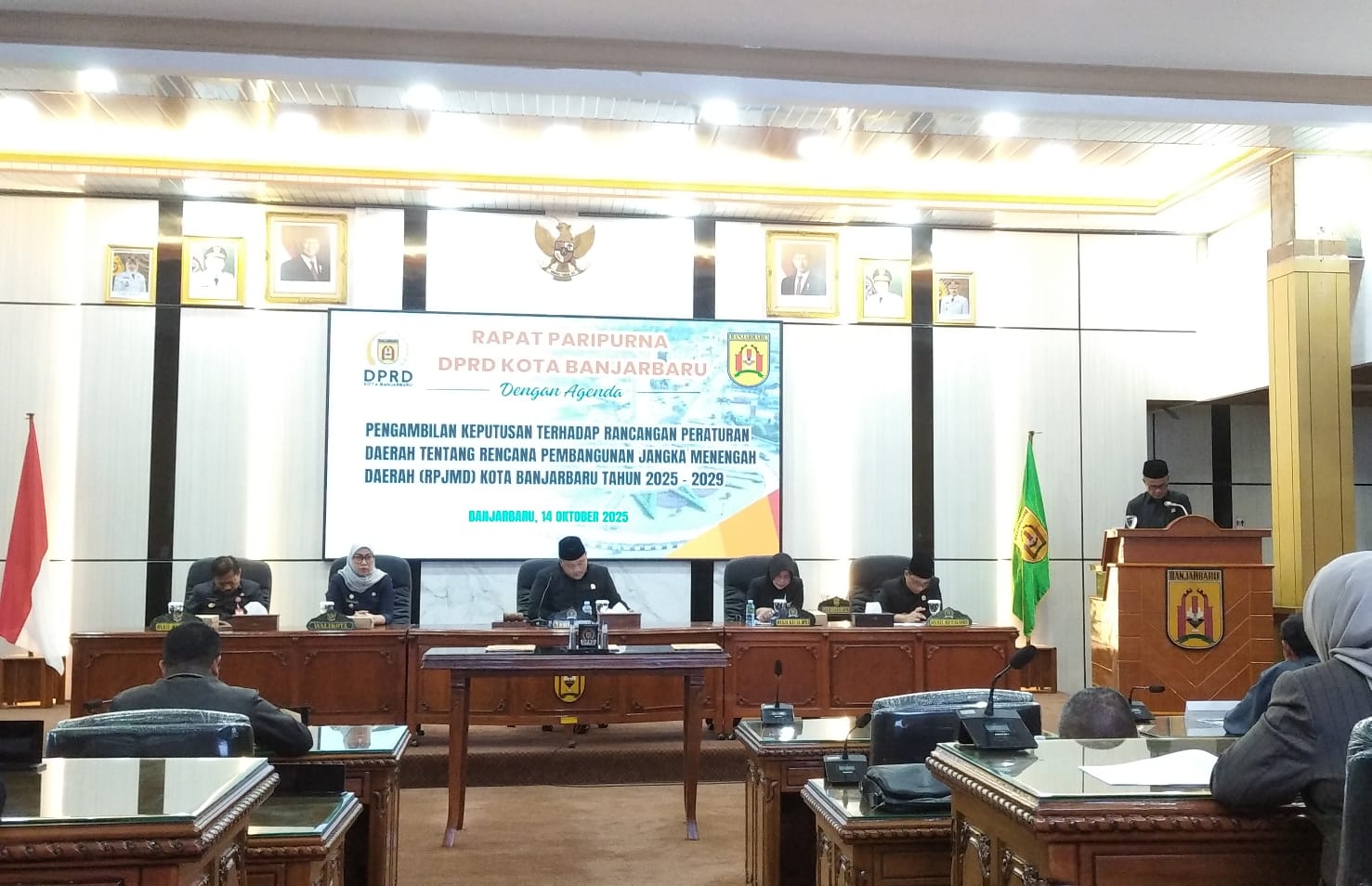 Perihal tersebut dilaksanakan dalam rapat paripurna Pengambilan Keputusan terhadap Raperda RPJMD Kota Banjarbaru Tahun 2025 – 2029 di ruang Graha Paripurna yang dipimpin Ketua DPRD Kota Banjarbaru, Gusti Rizky Sukma Iskandar Putera pada Selasa (14/10/2025).
