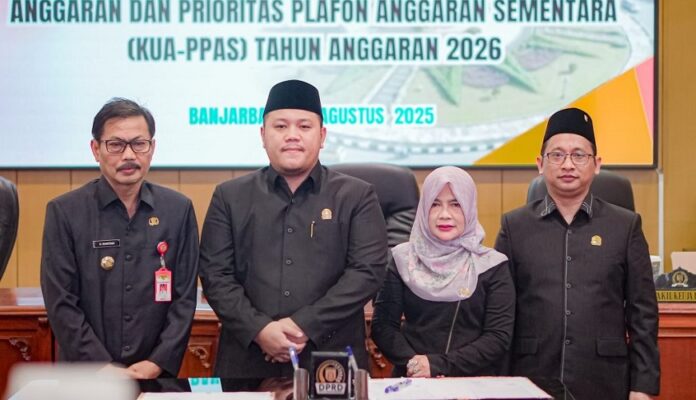 klikkalimantan.com, BANJARBARU – DPRD Kota Banjarbaru menggelar rapat paripurna, Kamis (14/9/2025) dengan agenda, penandatanganan nota kesepakatan Kebijakan Umum Anggaran dan Prioritas Plafon Anggaran Sementara (KUA/PPAS) Tahun Anggaran (TA) 2026. Dipimpin Ketua DPRD, Gusti Rizky Sukma Iskandar Putera, rapat paripurna dihadiri Wakil Wali Kota Banjarbaru, Wartono.
