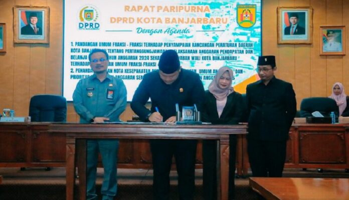 klikkalimantan.com, BANJARBARU – Setalah melalui tahap pembahasan bersama, Perubahan Kebijakan Umum Anggaran (KUA) dan Prioritas dan Plafon Anggaran Sementara (PPAS) TA 2025 akhirnya disepakati. Penandatangan nota kesepakatan bersama dilakukan pada rapat paripurna DPRD Kota Banjarbaru, Rabu (18/6/2025).