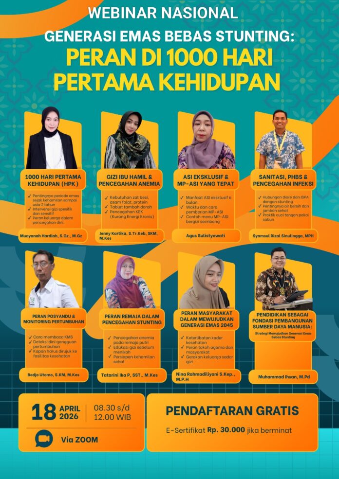 klikkalimantan.com, PARINGIN – Dua dosen Universitas Sapta Mandiri (UNIVSM) Kabupaten Balangan, Kalimantan Selatan, turut berpartisipasi sebagai narasumber dalam Webinar Nasional bertajuk “Generasi Emas Bebas Stunting: Peran di 1000 Hari Pertama Kehidupan” yang digelar pada 18 April 2026 melalui platform digital Zoom.