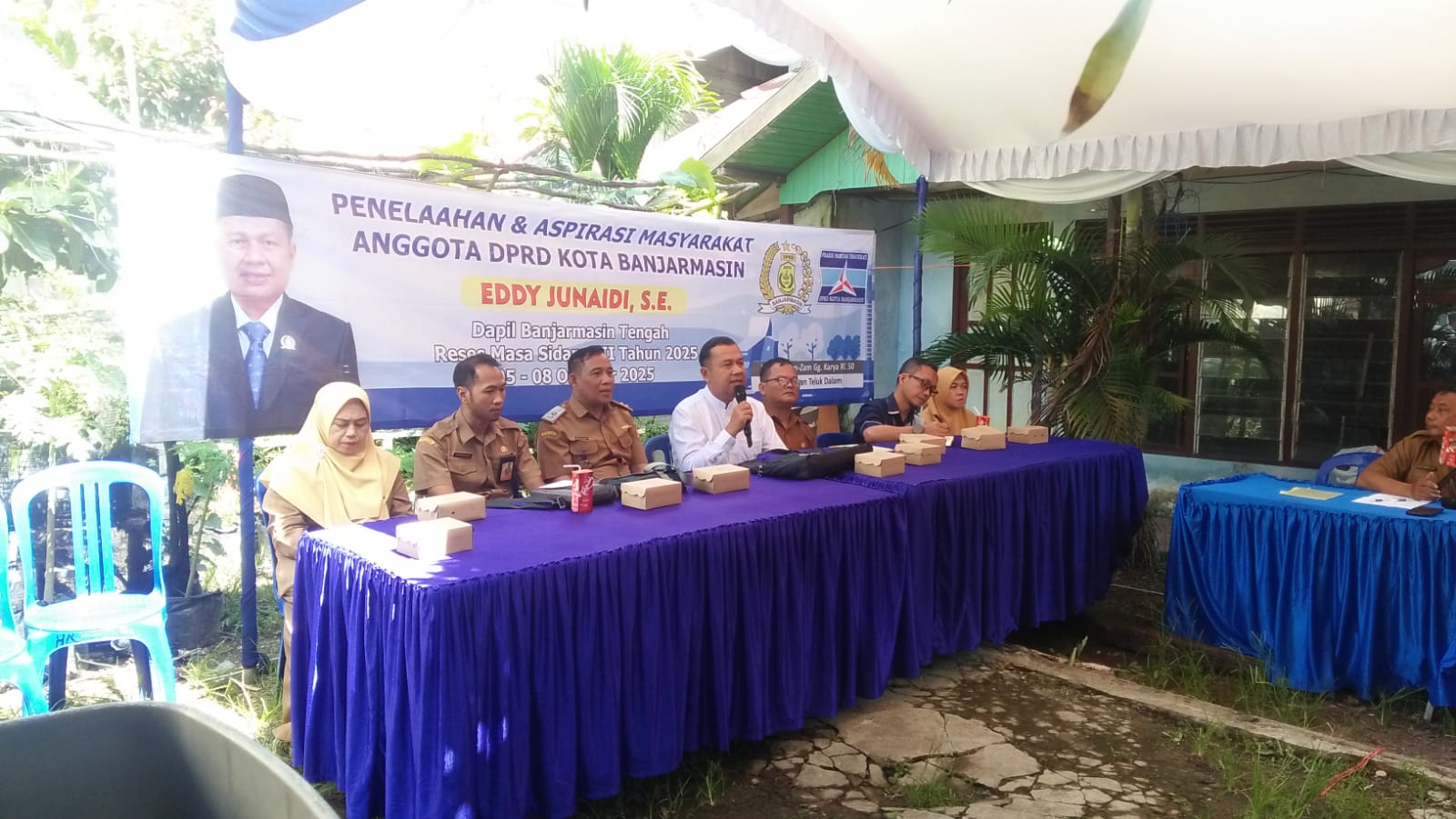 klikkalimantan.com, BANJARMASIN – Anggota DPRD Kota Banjarmasin, Edy Junaidi, melaksanakan kegiatan reses di Kampung Merah Putih Gang Karya, RT50 Kelurahan Teluk Dalam,Kecamatan Banjarmasin Tengah, Senin (6/10/2025).
