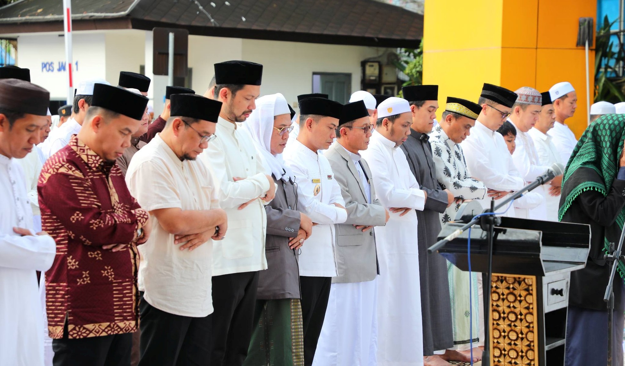 Ketua DPRD Kota Banjarmasin, Rivkal Fahruri, mengikuti sholat Idhul Fitri di halaman Balaikota Banjarmasin Sabtu (21/03/2026) pagi. Sekaligus mengikuti alal bihalal bersama Pemerintah Kota Banjarmasin