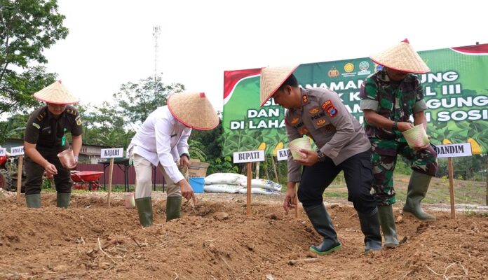 klikkalimantan.com, PARINGIN – Bupati Balangan, H Abdul Hadi mengikuti kegiatan ‘Tanam Jangung Serentak Kuartal III’, Rabu (9/7/2025). Kegiatan dilaksanakan jajaran Polres Balangan bersama intansi terkait di lingkungan Pemkab Balangan di kawasan Jalan Bhayangkara, Kelurahan Batu Piring ini bagian dari realisasi program nasional swasembada dan ketahanan pangan digagas Presiden RI, Prabowo Subianto.