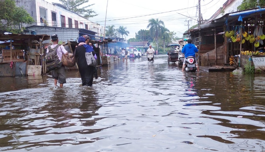 “Kalau ruas Jalan Melati sudah terendam air banjir sejak 10 hari yang lalu. Dan hari ini air banjir meninggi cukup cepat, di ruas jalan saja sudah hampir 100 Cm,” katanya.