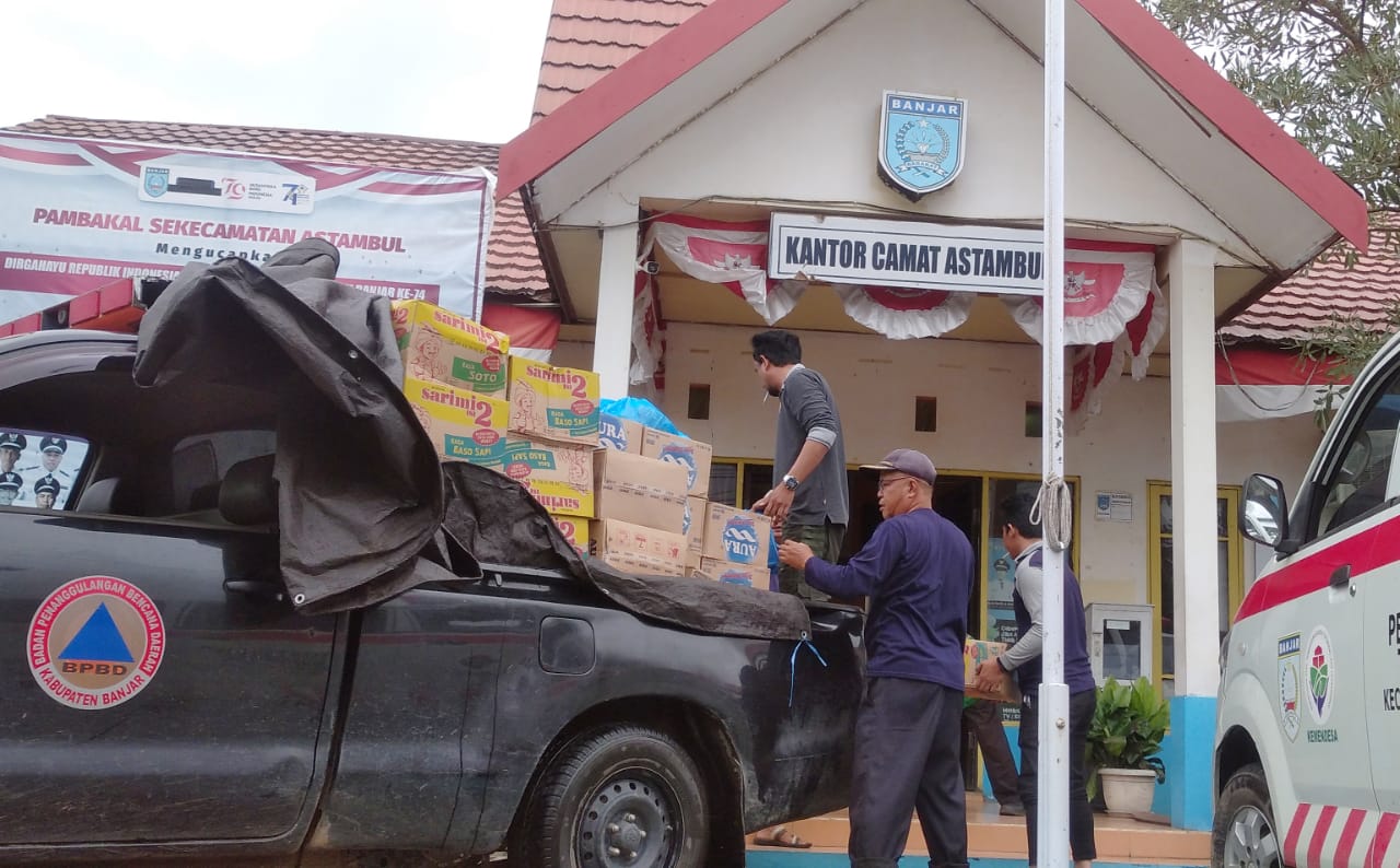 Dan hari ini, sejumlah logistik untuk warga terdampak banjir di beberapa desa yang ada di Kecamatan Astambul pun mulai didistribusikan BPBD Kabupaten Banjar ke kantor kecamatan, yakni air mineral 40 dos, mie instan 40 dos, 200 Ikan kaleng, 20 pack kopi sachet, 8 kotak teh, 12 liter minyak goreng, 8 botol saos, 8 botol kecap, 40 pouch makanan siap saji. Serta bantuan dari Badan Amil Zakat Nasional (BAZNAS) seperti 300 liter, 43 Kg telur ayam, mei instansi 10 dos.(zai/klik)
