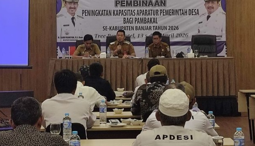 klikkalimantan.com, MARTAPURA – Pemerintah Kabupaten (Pemkab) Banjar, melalui Dinas Pemberdayaan Masyarakat dan Desa (DPMD) melaksanakan kegiatan ‘Pembinaan Peningkatan Kapasitas Aparatur Pemerintah Desa bagi Pambakal se-Kabupaten Banjar Tahun 2026’, 13 – 17 April 2026 di Hotel Treepark, Kecamatan Kertak Hanyar. Seremoni pembukaan dilakukan Kepala DPMD, Hafizh Anshari, Selasa (14/4/2026).