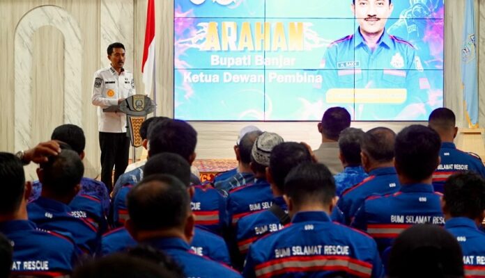 klikkalimantan.com, MARTAPURA – Bupati Banjar H Saidi Mansyur melantik sebanyak 61 pengurus Bumi Selamat Rescue (Buser) 690 periode 2025 – 2030, Kamis (16/4/2026) di Gedung Mahligai Sultan Adam Martapura.
