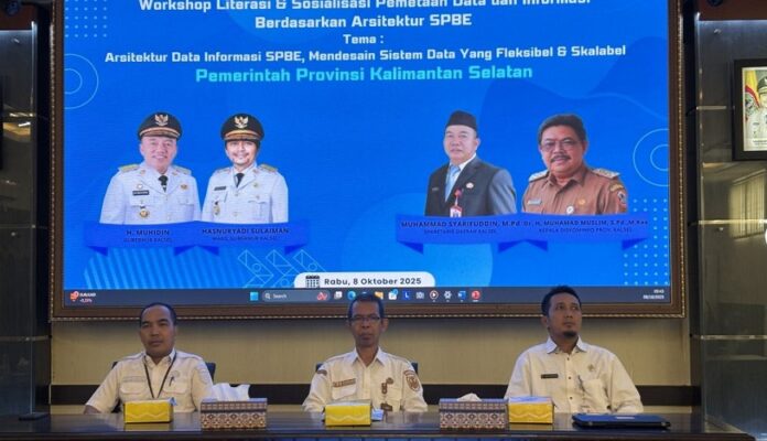 klikkalimantan.com, BANJARBARU – Dinas Komunikasi dan Informatika (Kominfo) Provinsi Kalimantan Selatan (Kalsel) melaksanakan Workshop, Literasi dan Sosialisasi Pemetaan Data dan Informasi berdasarkan arsitektur Sistem Pemerintahan Berbasis Elektronik (SPBE) di lingkup Pemerintah Provinsi (Pemprov) Kasel, Rabu (8/10/2025) di aula kantor dina setempat di Banjarbaru.