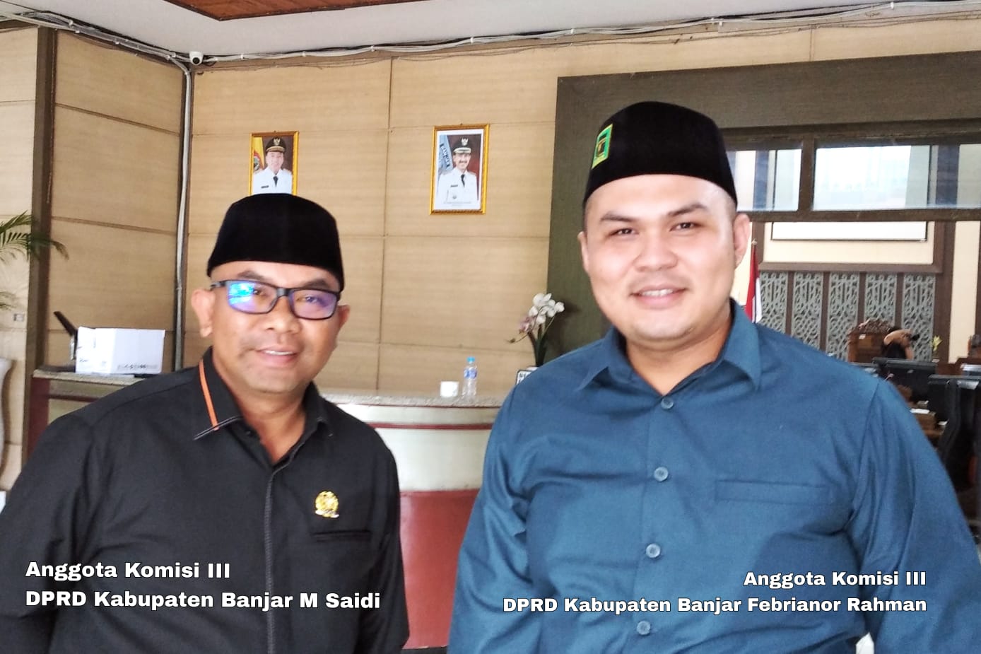 Anggota Komisi III DPRD Kabupaten Banjar, Febrianor Rahman mengatakan, perihal tersebut juga sudah disampaikan dalam Rapat Dengar Pendapat (RDP) yang dipimpin Abdul Razak selaku Ketua Komisi III bersama Dinas Pekerjaan Umum Penataan Ruang dan Pertanahan (PUPRP) dan Dinas Perumahan Rakyat Kawasan Permukiman dan Lingkungan Hidup (DPRKPLH) Kabupaten Banjar.