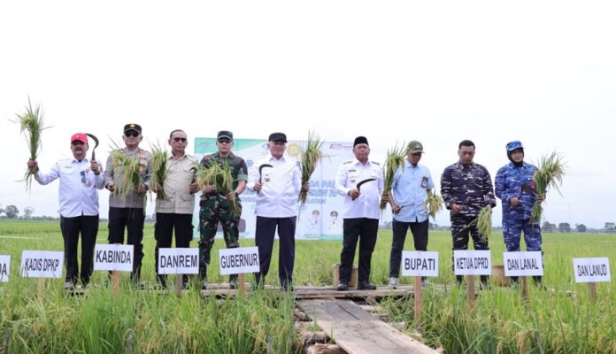 klikkalimantan.com, MARABAHAN – Panen raya padi dilakukan serentak se-Indonesia via daring, Rabu (7/1/2026) di Kalimantan Selatan (Kalsel) panen raya terpusat di Desa Beringin Jaya, Kecamatan Anjir Muara, Kabupaten Barito Kuala (Batola). Kegiatan dihadiri Gubernur Kalsel, H Muhidin. Saat yang sama, via daring, juga disampaikan pengumuman Swasembada Pangan Nasional.