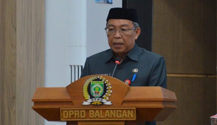 Membacakan sambutan tertulis Bupati Balangan, Pj Sekda Sufriannormenyampaikan apresiasi kepada pimpinan, fraksi, dan seluruh anggota DPRD yang telah bekerja keras membahas serta mendalami rancangan KUA dan PPAS 2026 di tengah padatnya agenda pemerintahan.