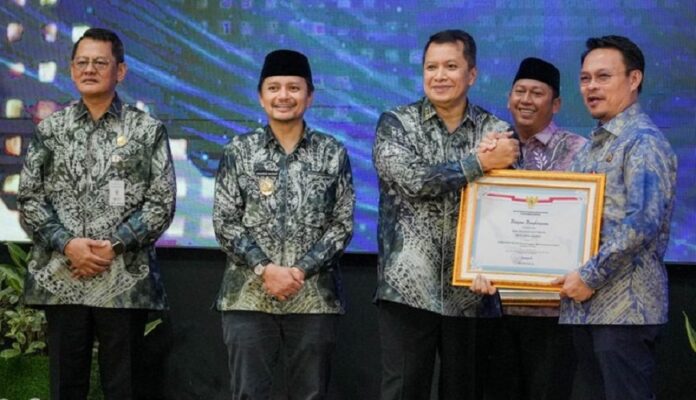 Dua penghargaan tersebut diserahkan Wakil Menteri Pendayagunaan Aparatur Negara dan Reformasi Birokrasi (Wamenpan-RB), Purwadi Arianto saat pelaksanaan Rapat Koordinasi (Rakor) Pelayanan Publik se-Kalimantan Selatan, Kamis (17/4/2025) di Gedung Mahligai Pancasila, Banjarmasin.