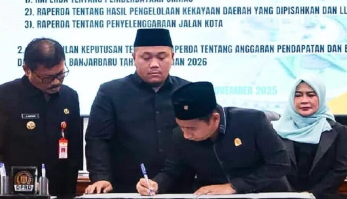 klikkalimantan.com, BANJARBARU – Peraturan Daerah (Perda) Anggaran Pendapatan dan Belanja Daerah (APBD) Kota Banjarbaru Tahun Anggaran (TA) 2026 diketok. Pengambilan keputusan raperda ini dilakukan saat pelaksanaan rapat paripura DPRD Kota Banjarbaru, Kamis (13/11/2025).