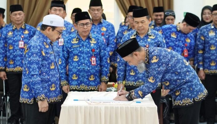 klikkalimantan.com, MARTAPURA – Perubahan nomenklatur, Badan Perencanaan Pembangunan Daerah Penelitian dan Pengembangan (Bappedalitbang) Kabupaten Banjar berganti menjadi Badan Perencanan Pembangunan Riset dan Inovasi Daerah (Bapperinda). Pengukuhan perubahan ini dilakukan bersamaan dengan proses pelantikan pejabat dilakukan Wakil Bupati (Wabup) Banjar, Habib Idrus Al Habsyi, Selasa (31/3/2026) di Gedung Mahligai Sultan Adam Martapura.