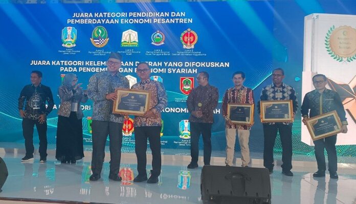 Pelaksana tugas (plt) Asisten pemeirntan dan Kesejahteraan Rakyat Setda Kalsel, Muhammad Farhanie yang menerima penghargaan mewakili Gubernur Kalsel, H Muhidin. “Alhamdulillah, Kalsel kembali mendapatkan penghargaan Adinata Syariah dalam kategori Kelembagaan Daerah yang Berfokus pada Pengembangan Ekonomi Syariah,” kata Farhanie.