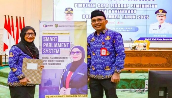 klikkalimantan.com, BANJARBARU – Bersamaan pelaksanaan rapat koordinasi (rakor) pimpinan Organisasi Perangkat Daerah (OPD) awal pekan lalu, dilakukan peluncuran aplikasi Smart Parliameny System (SI MAPAN). Di hadapan peserta rakor dipimpin Sekretaris Daerah (Sekda) Kota Banjararu, Sirajoni, Sekretaris DPRD Kota Banjarbaru, Arnawaty Sufiatin memaprkan konsep aplikasi ini.