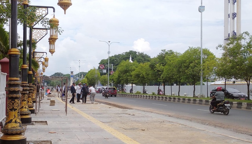 “Item pengerjaan yang kita kejar yakni, pengecoran pedestarian di depan Gedung Mahligai Sultan Adam, pemasangan granit, cor bahu jalan, pemasangan PJU, bollard, serta tanaman,” kata Iwan Junaidi.