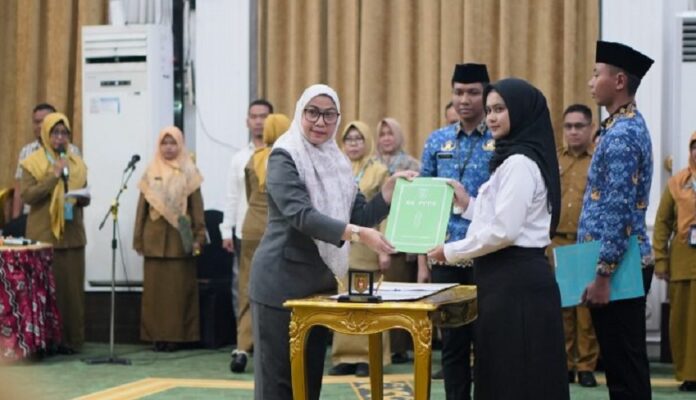 klikkalimantan.com, BANJARBARU – Wali Kota Banjarbaru, Hj Erna Lisa Halaby melantik dan menyerahkan Surat Keputusan (SK) Pegawai negeri Sipil (PNS) dan Pegawai Pemerintah dengan Perjanjian Kerja (PPPK) Tahap II Formasi 2024, Senin (1/9/2025) di Aula Gawi Sabarataan, Balaikota Banjarbaru.